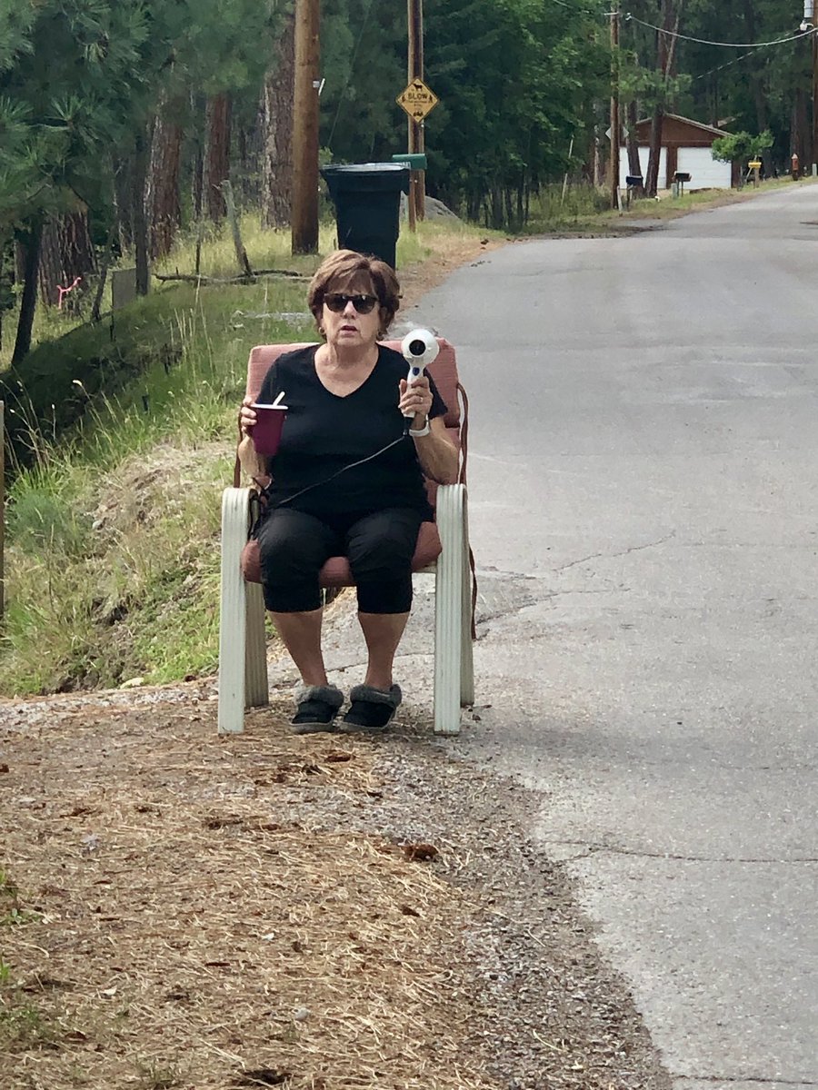 Luna trecută au apărut pe internet primele fotografii cu Patti Baumgartner, stând pe marginea drumului pe un scaun, cu un uscător de păr în mână. Un polițist local a surprins-o și a primit titlul Baumgartner de polițist statal onorific, pentru munca ei de a combate viteza mare pe drumurile din sat.